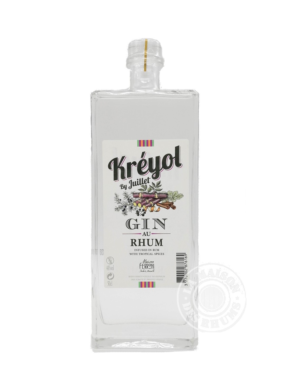 Le Gin Ferroni Kreyol Le Gin au Rhum 44% 50cl est né de l'idée de réunir le Gin et le Rhum dans un bouteille de Gin au Rhum peut sembler saugrenue, c'est sans compter sur l'audace et le savoir-faire de Guillaume Ferroni !