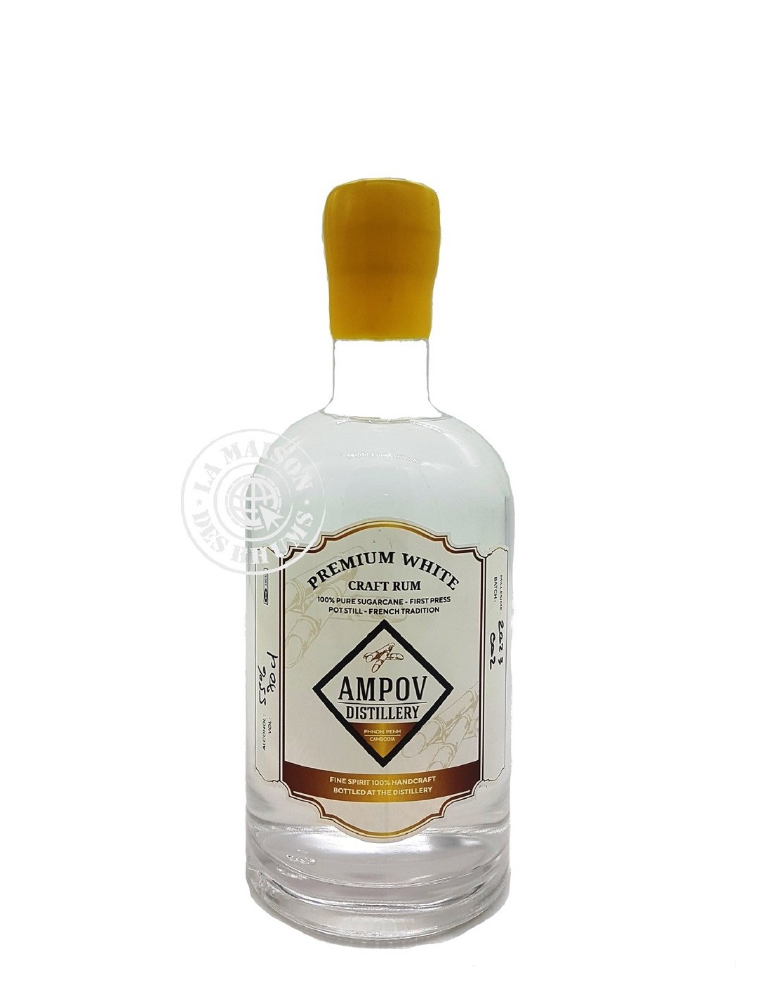 Le Rhum Ampov Blanc Premium White Millésime 2023 55% est un Rhum Blanc de pur jus de canne 100% Cambodgien. Élaboré à partir de canne à sucre cultivées à proximité de la distillerie, la fermentation du vesou est menée sans acidification avant une distillation dans un alambic à repasse avant une mise en bouteille à 55%vol.