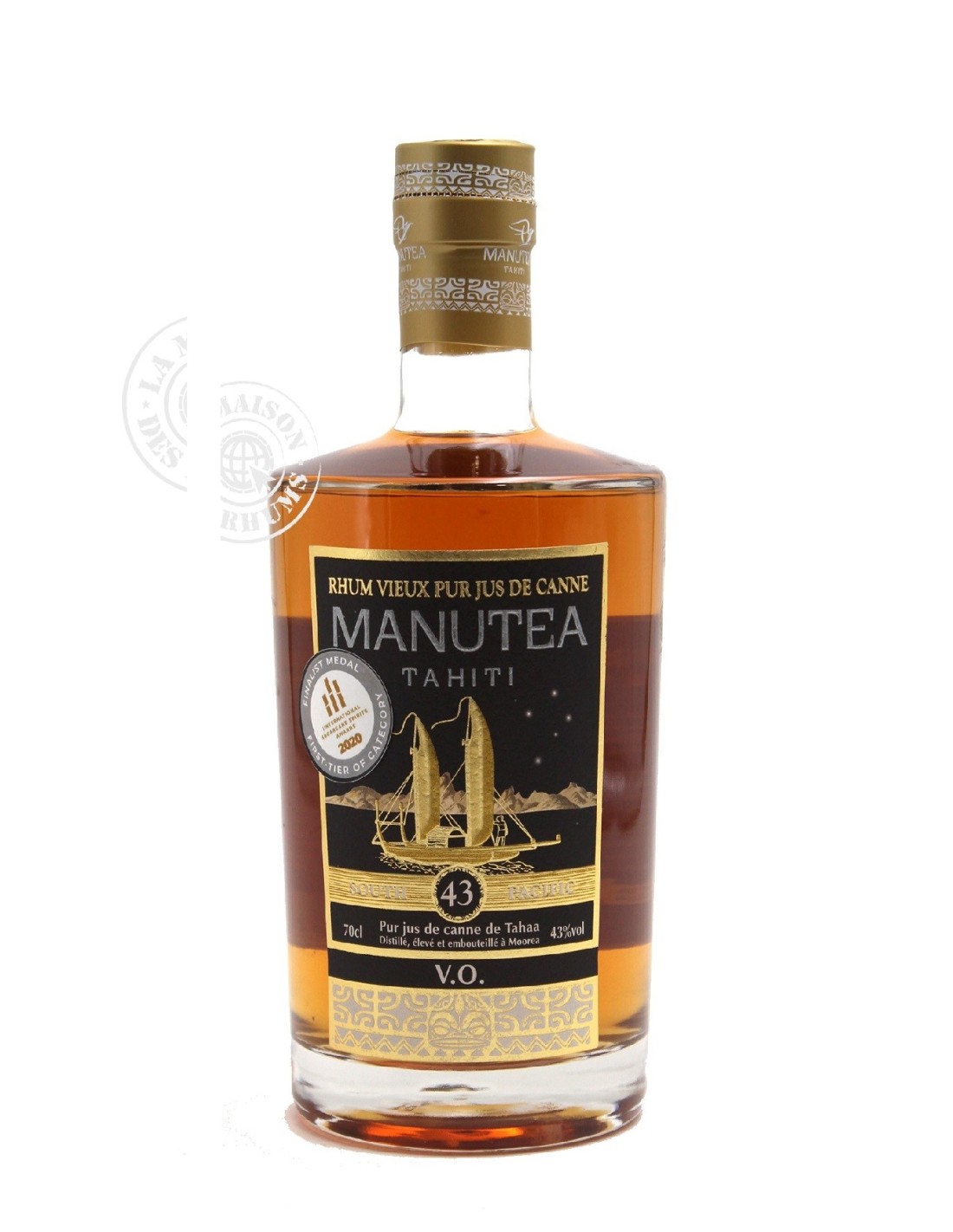 Produit par la distillerie Manutea basée à Moorea, le Rhum Manutea Vieux VO 43% est exclusivement produit à partir de la variété de canne à sucre O'Tahiti. Après une distillation discontinue en alambic hybride, le Rhum est mis en vieillissement tropical en ex-fûts de Bourbon et ex-fûts de Banyuls pendant un minimum de 3 ans.