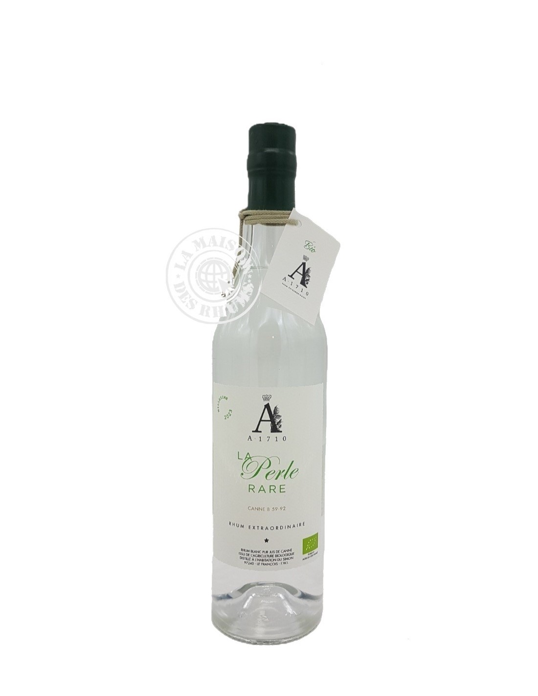 Le Rhum A1710 Blanc La Perle Rare Canne Roseau Millésime 2023 54.1% est un Rhum Blanc Agricole de Martinique issu d'une parcelle de cannes à sucre Roseau (variété B 59-92) cultivées en Agriculture Biologique (certifiée ECOCERT) située à l’Habitation du Simon, au cœur de l’exploitation et à proximité immédiate de la rhumerie.
