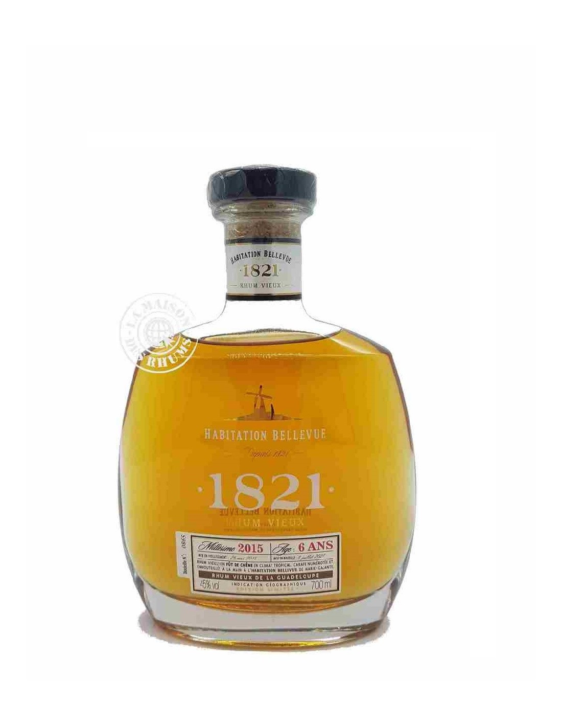Chaque carafe de Rhum Habitation Bellevue Vieux 6 ans 2015 45% est embouteillée à la main et numérotée.