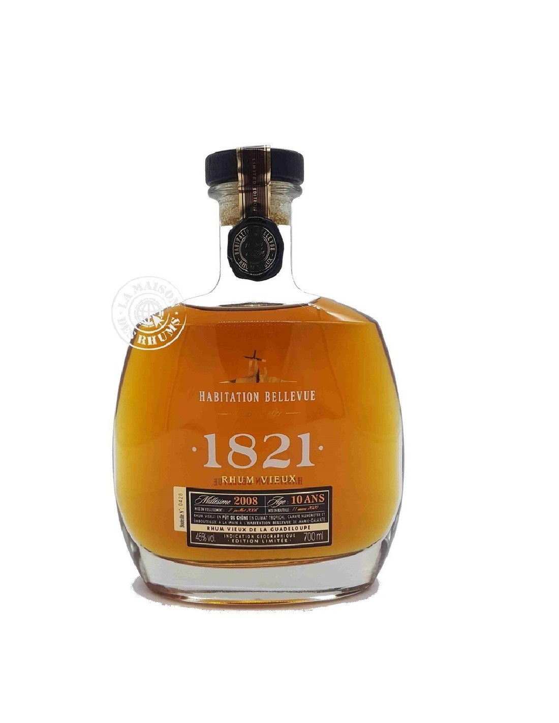 Chaque bouteille de Rhum Habitation Bellevue Vieux 10 ans 2008 45% est embouteillée à la main et numérotée.