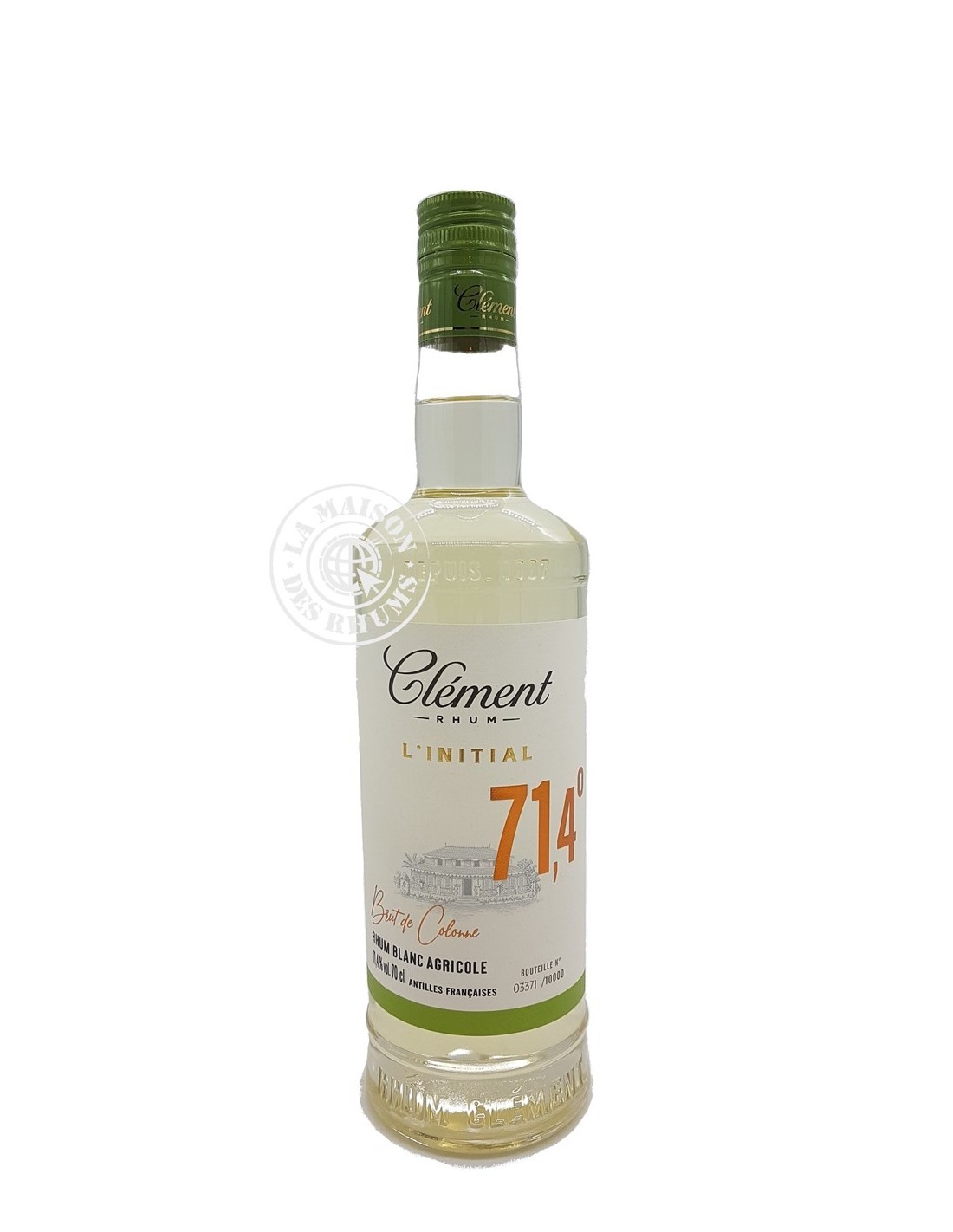 Le Rhum Clément Blanc L'Initial Brut de Colonne 71,4% est un Rhum Agricole Blanc AOC Martinique. Il s'agit premier Rhum brut de colonne signé Clément ! Après distillation, le Rhum est reposé en foudre avant son embouteillage celui qui lui confère cette subtile teinte dorée.