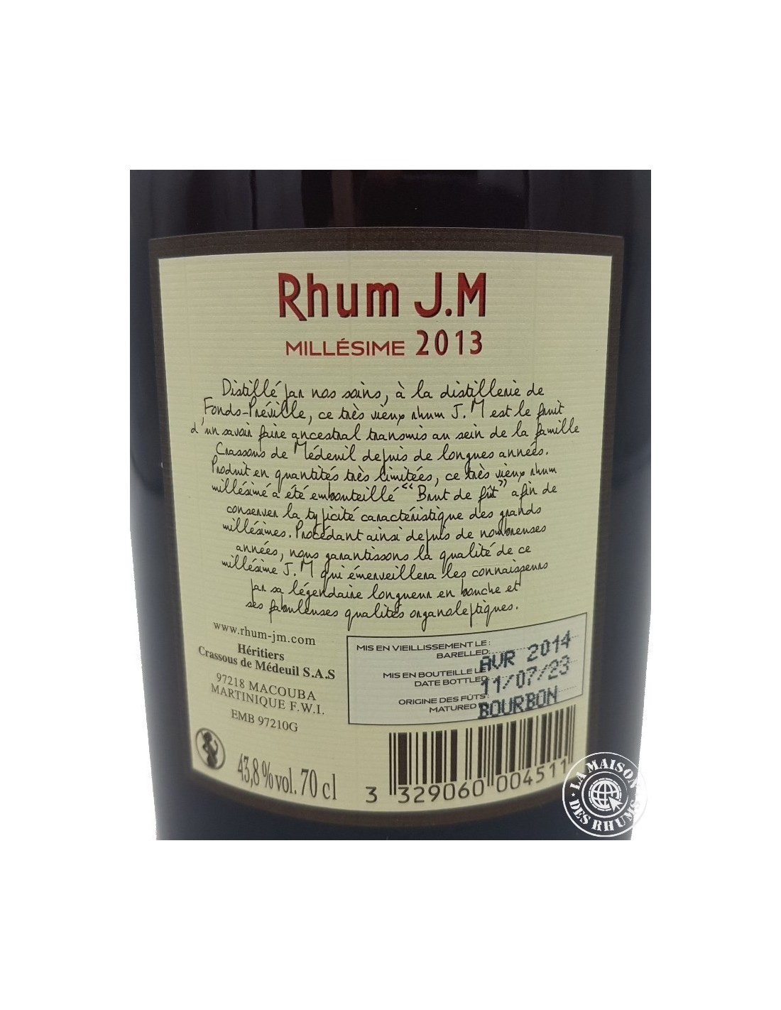 À la dégustation, ce Rhum JM Vieux Millésime 2013 Brut de Fût 43.8% révèle un caractère ample, riche et complexe aux notes de fruits confits, de chocolat et de vanille.
