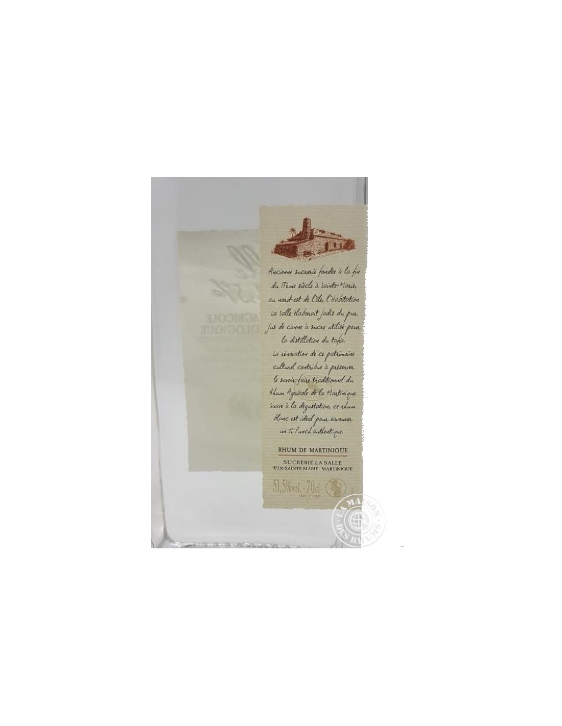 Le Rhum La Salle Blanc 51,5%vol est né d'une salutaire initiative de la fameuse distillerie Saint James ! En effet, la célèbre marque aux bouteilles carrées a récemment restauré une ancienne sucrerie fondée au 17ème siècle : l'Habitation La Salle. À partir de cannes à sucre cultivées en Agriculture Biologique, Saint James a élaboré ce Rhum Agricole Blanc AOC Martinique et fait ainsi revivre tout un pan du patrimoine martiniquais.