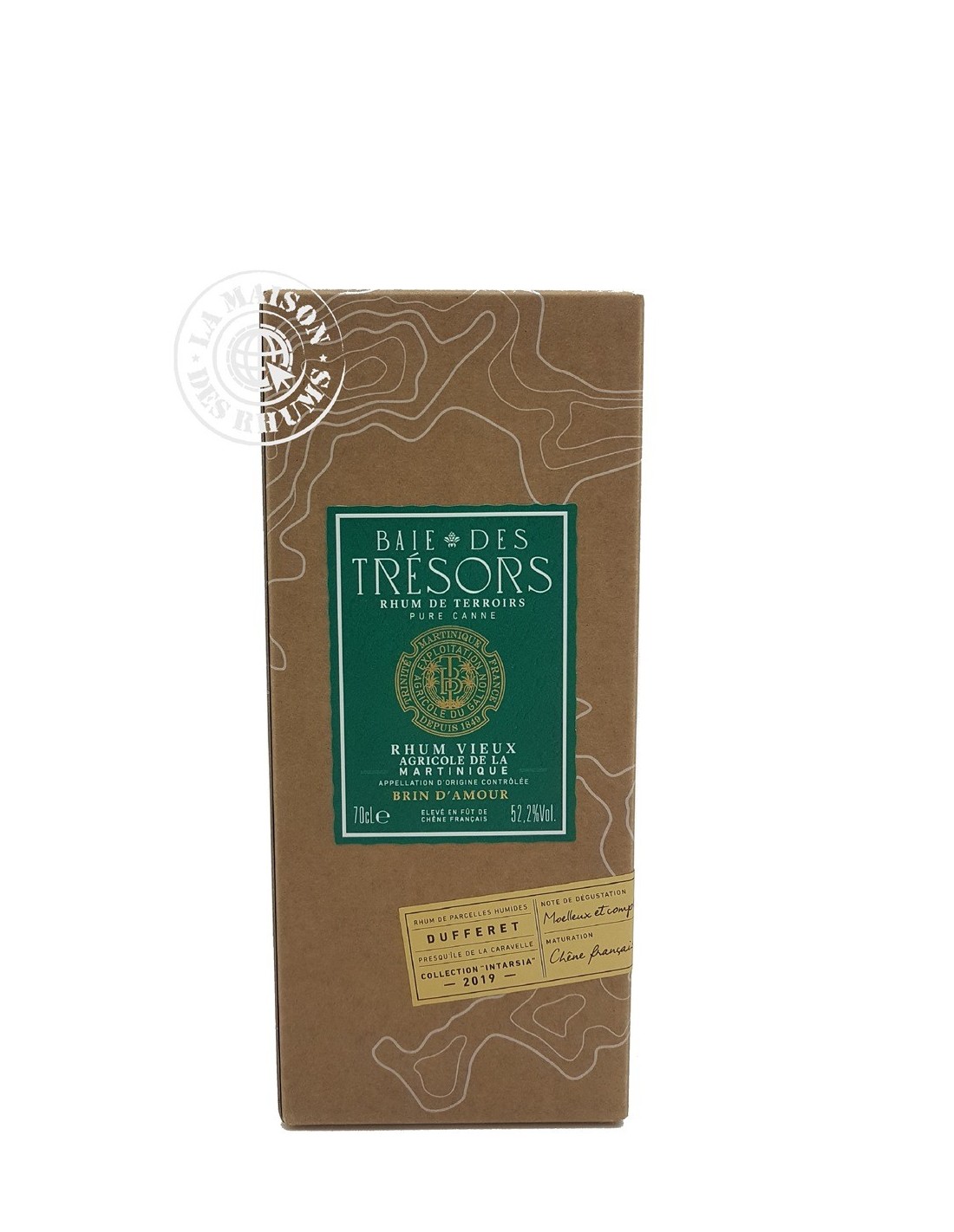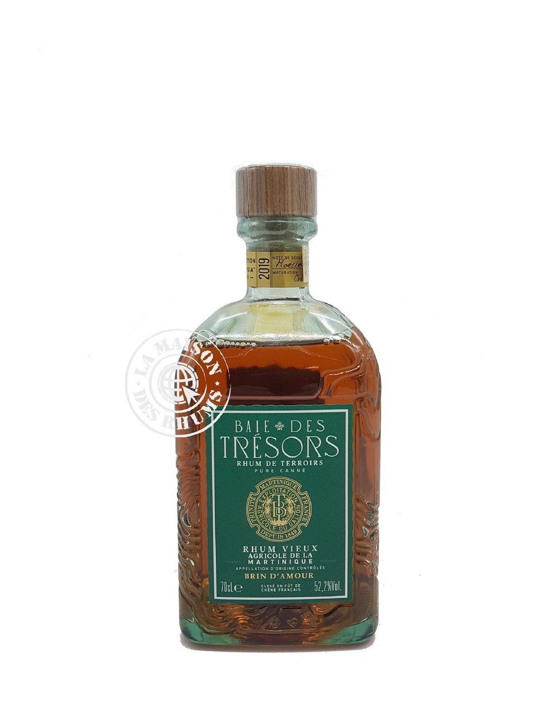 Le Rhum Baie des Trésors Vieux Brin d'Amour Millésime 2019 52.2% est un Rhum Agricole AOC Martinique. Il s'agit d'un Rhum Vieux parcellaire dont les cannes à sucre ont poussé sur la parcelle Brin d'Amour. Située sur les hauteurs de la Baie du Galion, cette parcelle bénéficie de précipitations importantes qui confèrent au Rhum des tonalités douces et riches. Après 4 ans de vieillissement en petits fûts de chêne Français, cette cuvée a été embouteillée à 52,2%vol.