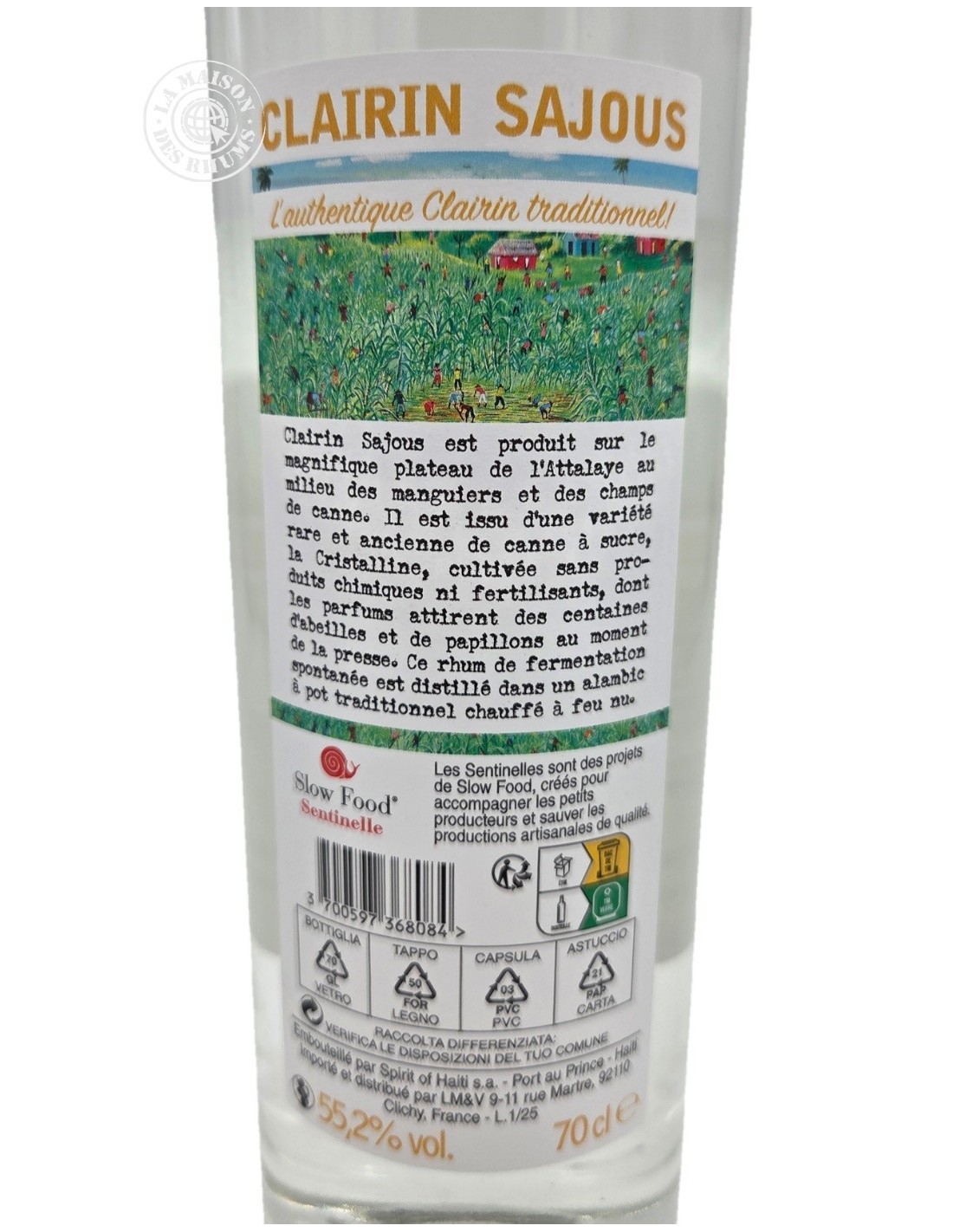Le Clairin Blanc Sajous Millésime 2021 54.2% est produit au Nord de Port-au-Prince, près de Saint-Michel de l’Attalaye par Michel Sajous. C'est à l'endroit même où se tenait l'ancien établissement familial qu'il a construit sa nouvelle distillerie. Sur une surface de 30 hectares, il cultive plusieurs variété de canne à sucre dont la canne Cristalline en agriculture biologique. Après extraction, le pur jus de canne est lentement concentré par chauffe pour obtenir un sirop dont la fermentation se fait avec des levures sauvages.