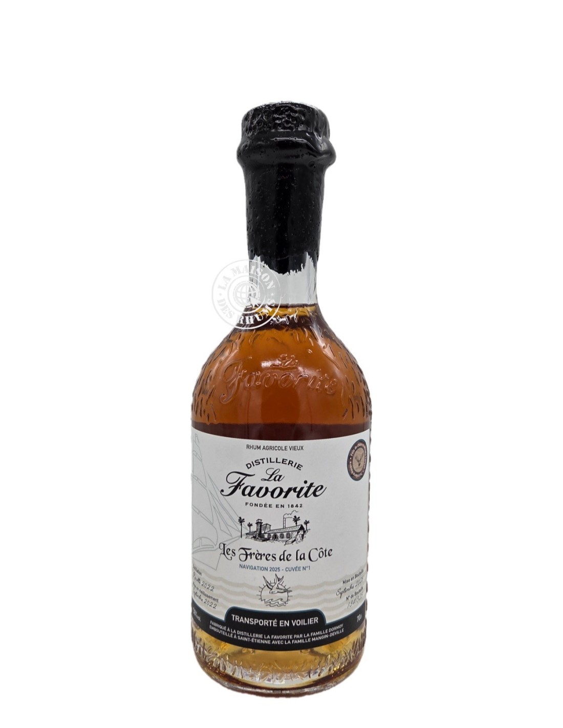 Le Rhum Les Frères De La Côte Ambré La Favorite Navigation 2025 Cuvée N°1 50% est le sixième chapitre de la série Navigation. Cette collaboration entre Les Frères de la Côte et la distillerie indépendante et familiale de Martinique La Favorite, explore une nouvelle facette du vieillissement dynamique en mer !