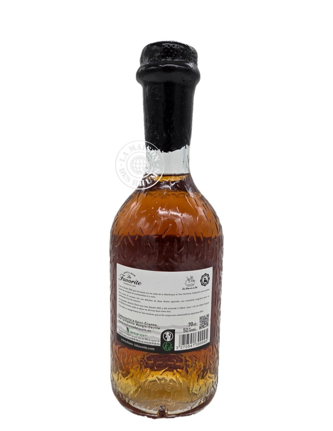 Pour ce nouvel opus, ce Rhum exceptionnel, distillé en 2022, a bénéficié d'une triple maturation qui a durée en tout 40 mois : 33 mois d'élevage ex-fûts de chêne français sous le climat tropical de la Martinique, puis 4 mois en mer en ex-fût de Whisky français à bord du Très Hombres sous les embruns de l'atlantique, et enfin 3 mois de repos dans les chais des Frères de la Côte dans la région stéphanoise. Une légère réduction a été opérée avant sa mise en bouteille sans coloration, ni filtration.