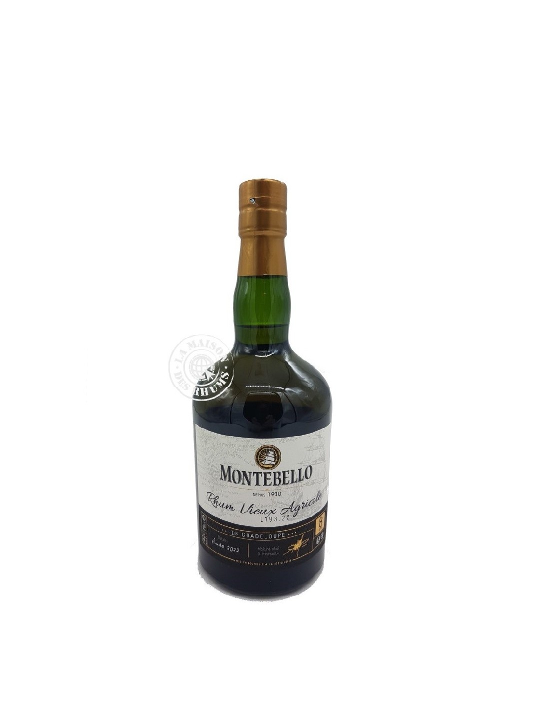 Le Rhum Montebello Vieux 8 ans 42% est un Rhum Agricole Vieux IGP Guadeloupe produit à la distillerie Carrère. Il a été longuement choyé par le Maître de Chai Dominique Marsolle pendant un vieillissement tropical de 8 ans avant d'être embouteillé à 42%.