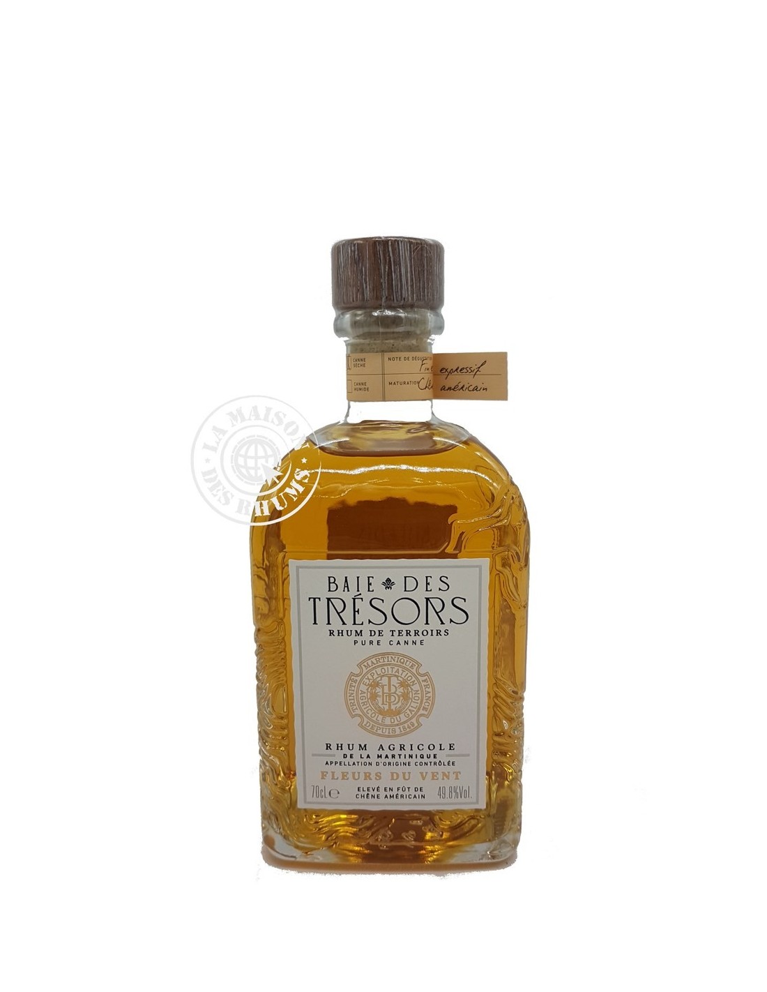 Le Rhum Baie des Trésors Fleurs du Vent est un Rhum Agricole Ambré AOC Martinique. Les cannes à sucre ayant servies à l'élaboration de ce Rhum ont été sélectionnées sur les parcelles sèches du lieu-dit Spoutourne. Caressées par les Alizées, ces terres donnent une canne à sucre aux accents subtils et délicats.