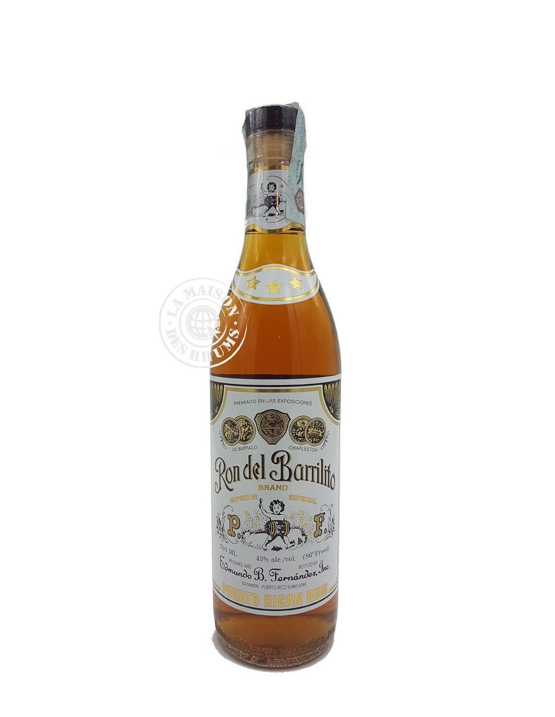 Le Rhum Ron Del Barrilito 3 Étoiles 43% est un Rhum traditionnel de mélasse produit à Porto Rico par la famille Fernández au sein de leur Hacienda familiale Santa Ana.