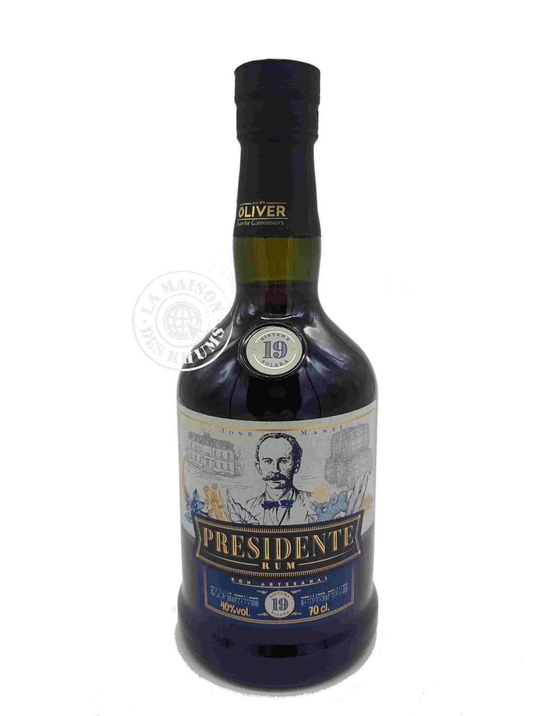 Le Rhum Presidente Marti Vieux 19 ans 40% est un représentant typique de la Tradition Hispanique. Sous sa belle robe acajou, ce Rhum présente des arômes de toffee, de pain d'épices et de fruits à coques caramélisés (noix, amandes) pleins de gourmandise.