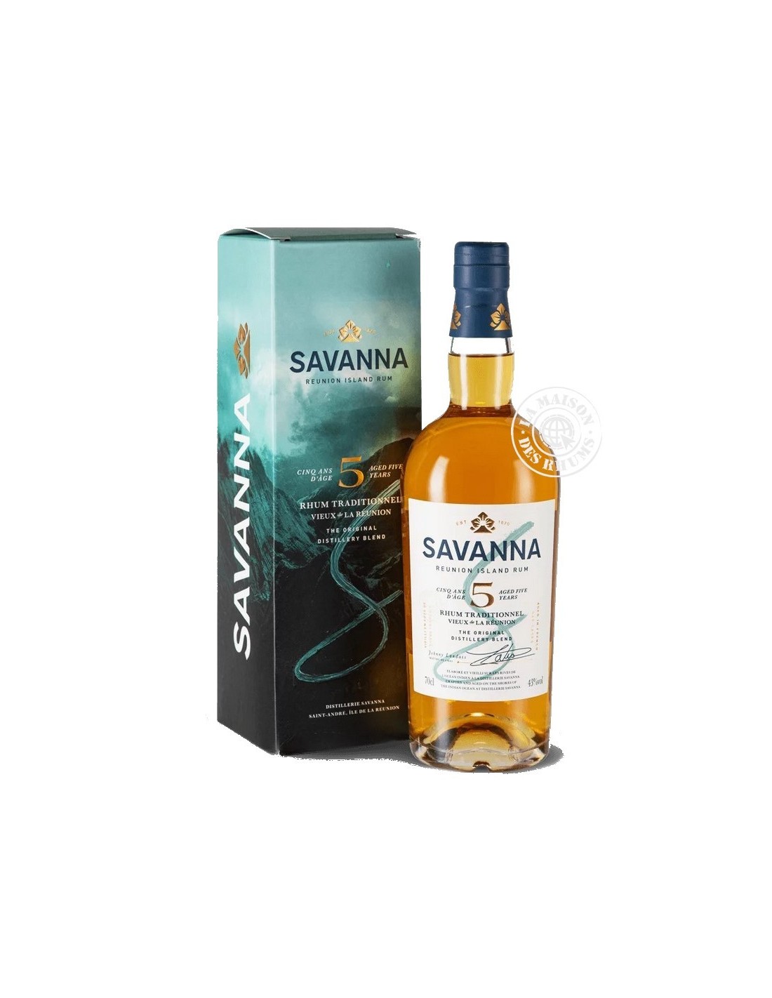 Le Rhum Savanna Vieux 5 ans 43% est un Rhum de mélasse produit par la distillerie Savanna à Bois-Rouge sur l'Île de la Réunion. Après une distillation en colonne, ce Rhum a vieilli pendant 5 en fûts de chêne français avant d'être embouteillé à 43% sans additif.