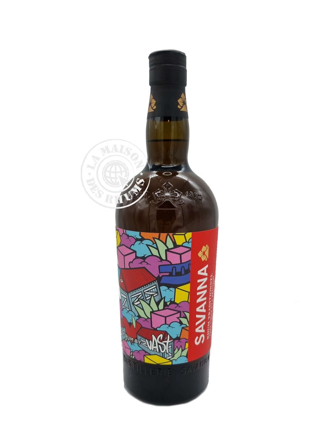 Le Rhum Savanna Vieux Art of Rum N°1 by Vast propose un assemblage inédit de 2 types de Rhums de mélasse distillés dans 2 types de colonnes de distillation puis vieillis en fûts de chêne pendant une période de 8 ans sous le climat tropical de l'île de la Réunion, dont les 2 dernières années de vieillissement ont eu lieu dans les fameux chais humides qui caractérisent la maison Savanna. L’embouteillage est réalisé à 52%Vol.