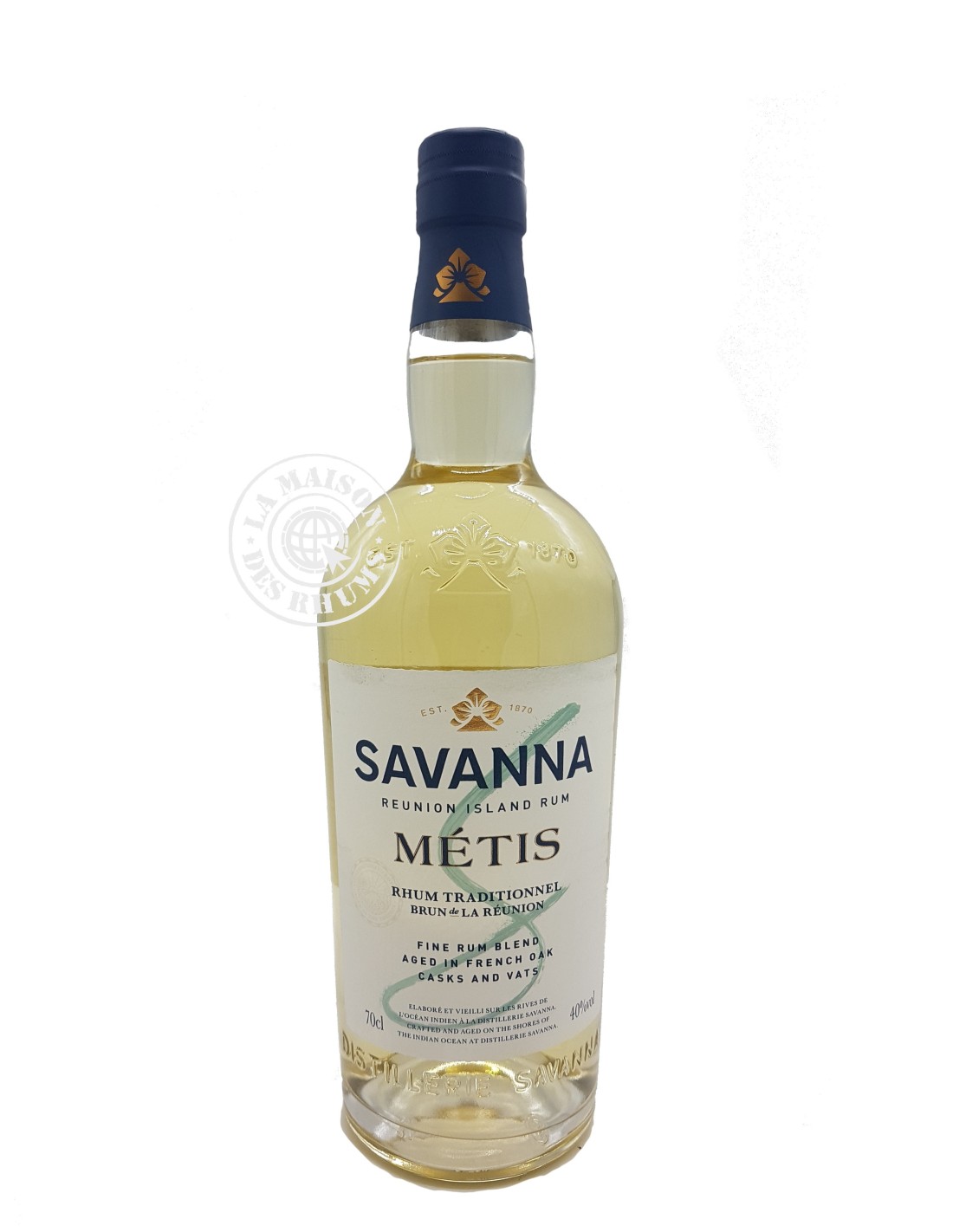 Le Rhum Savanna Ambré Métis 40% né d'un assemblage de Rhums de mélasse et de pur jus produits par la distillerie Savanna à Bois-Rouge sur l'Île de la Réunion. L'ensemble vieilli entre 18 mois et 4 ans en fûts et foudres de chêne avant d'être embouteillé à 40% sans additif.