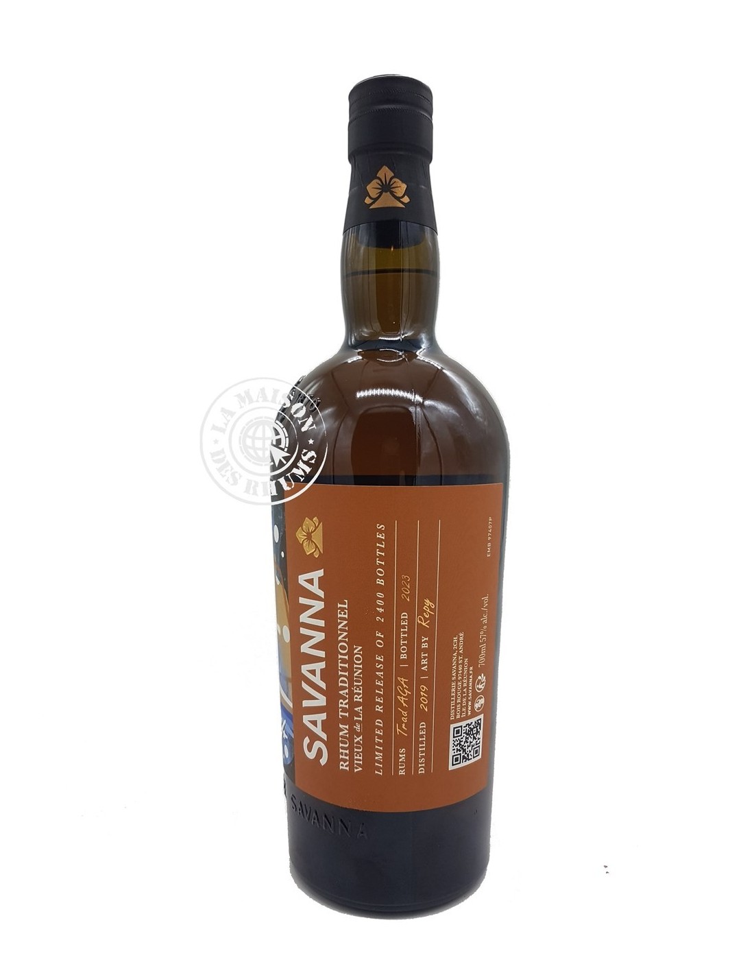 Le Rhum Savanna Vieux Art of Rum N°3 by Repy 57% est le 3ème chapitre d'une série de Rhums Vieux signés Savanna qui met en avant des artistes de l'Île de la Réunion. Pour cette nouvelle cuvée, Johnny Landais, le Maître de Chai de la distillerie, a assemblé 2 Rhums, tous 2 issus du millésime 2019. Le premier est un Rhum Agricole et le second est un Rhum Grand Arôme.