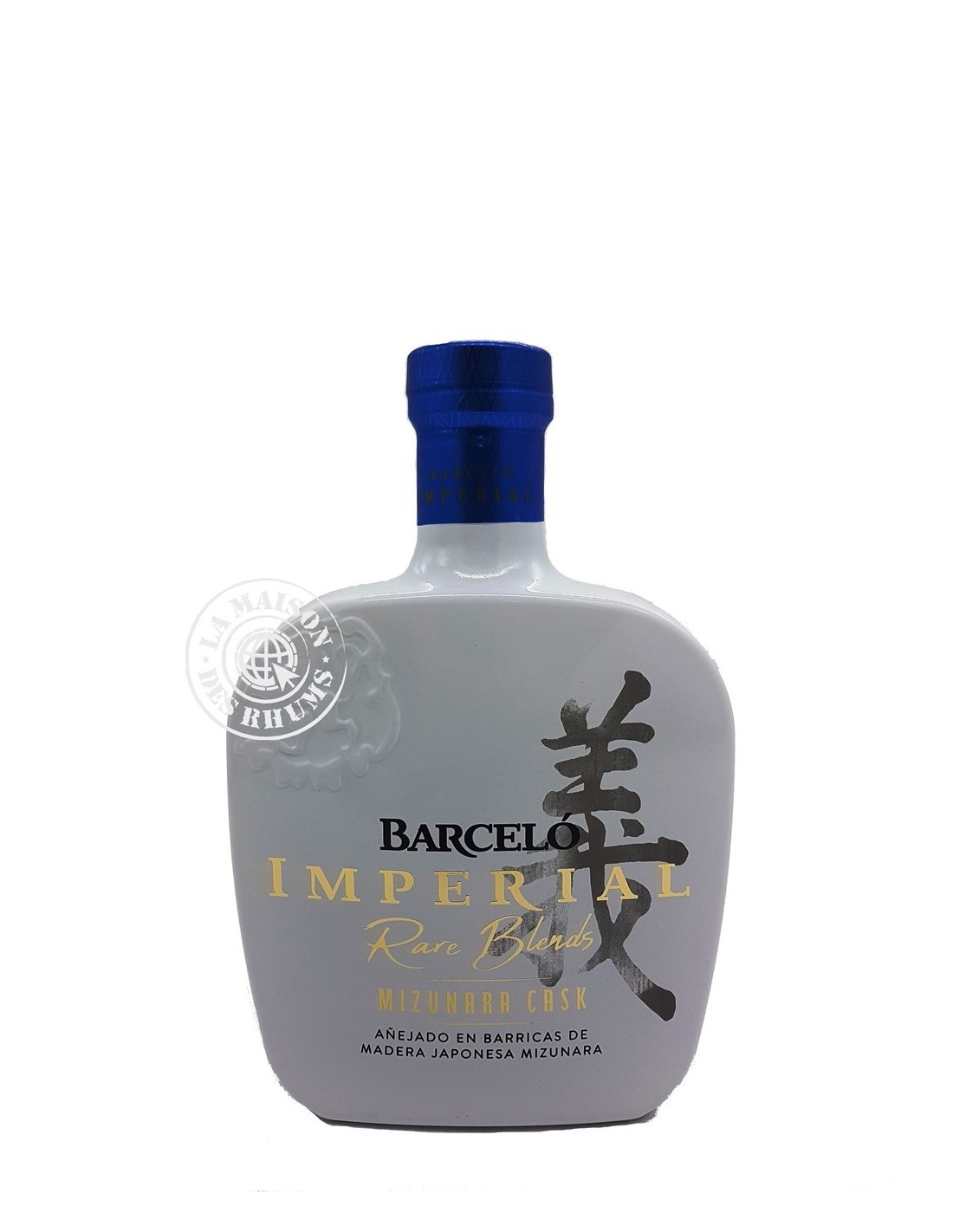 Le Rhum Barcelo Vieux Imperial Rare Blends Mizunara Cask 40% est un Rhum de pur jus de canne à sucre produit par la distillerie Barcelo en République Domincaine. Après une distillation en colonne, ce Rhum va débuter son vieillissement tropical pendant 8 à 10 ans en ex-fûts de Bourbon. Tout son identité aromatique va ensuite se révéler grâce à 1 an passé dans des fûts de chêne rouge japonais neufs, aussi connu sous le nom de chêne mizunara.