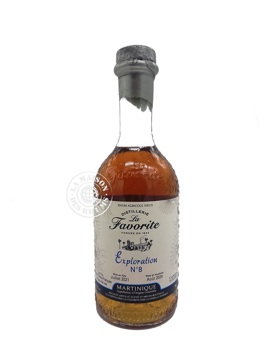Le Rhum La Favorite Vieux Exploration N°8 46% est un Rhum Agricole Vieux AOC Martinique produit par la famille Dormoy à la Martinique au sein de la distillerie La Favorite. Issu de la récolte 2021, le Rhum Blanc a été mis en vieillissement tropical pendant 3 ans en ex-fût de Cognac avant d'être embouteillé à 46%vol.