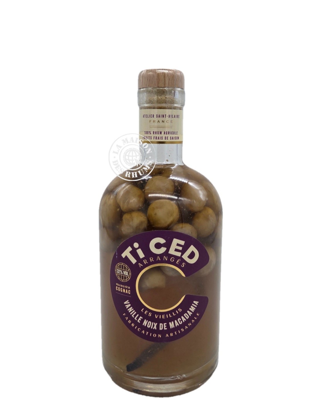 Le Punch Ti Arrangés de Ced' Vanille Noix de Macadamia est inspiré par une célèbre crème glacée. Ced’ revisite un classique de la gourmandise et le transpose dans l’univers des punchs au Rhum. Pour cela, la recette repose sur la macération de Rhum Agricole AOC de Martinique avec des noix de Macadamia et des gousses de vanille Bourbon de Madagascar pendant 6 mois en ex-fûts de Cognac.