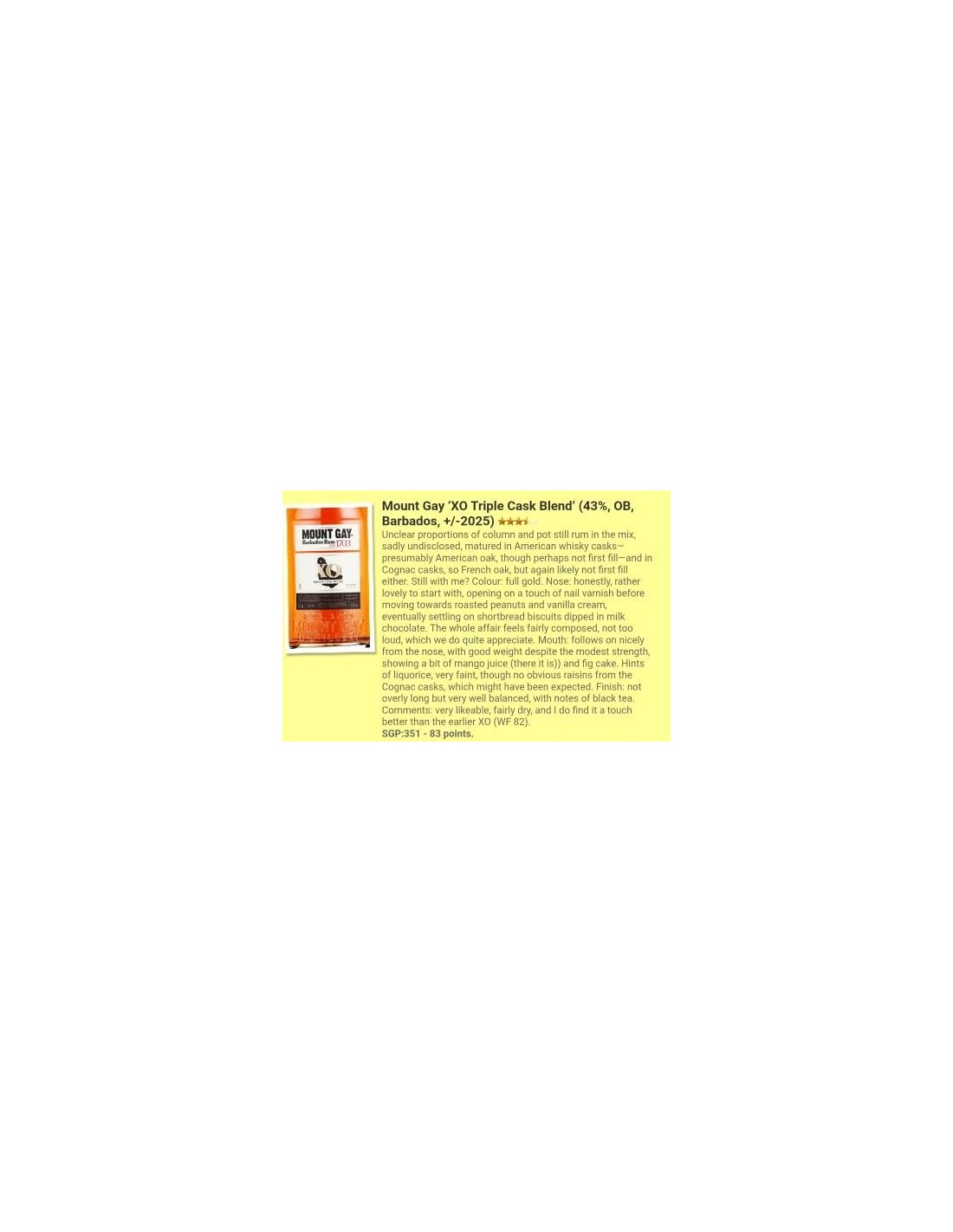 Le Rhum Mount Gay Vieux XO Triple Cask Blend 43% est un des fleurons de la Tradition Britannique. Cuvée créée en 1991, il reste encore aujourd'hui une référence incontournable dans le paysage international du Rhum !
